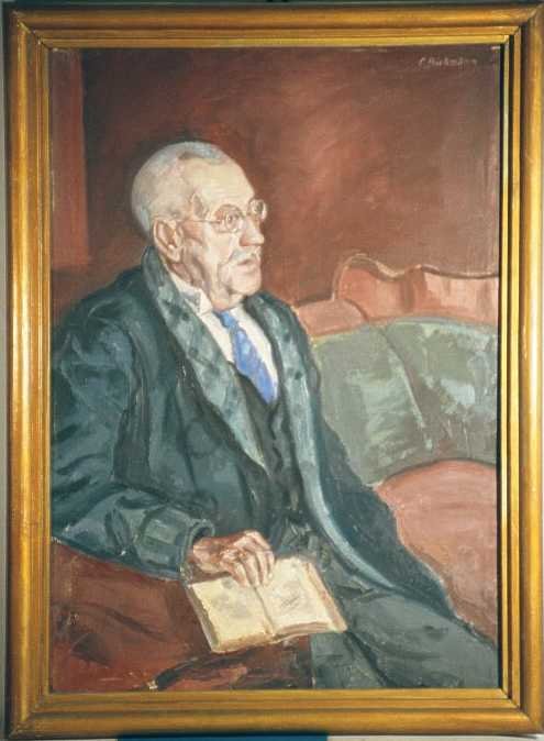 Dieses Gemälde circa 80 x 120 cm wurde von Leo 1928 geschaffen und stellt den damaligen Schulmeister Robert Rohmer (ein